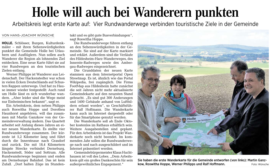 Die Hildesheim Allgemeine Zeitung berichtete über die Wanderkarte.